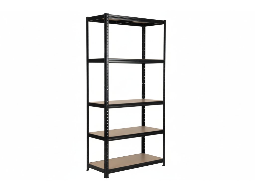 Lakovaný kovový regál Mamutex Standard 1800x900x450 mm – 5 políc, nosnosť 875 kg, čierny