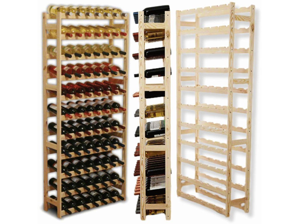 Pre skutočných milovníkov a zberateľov vína prinášame riešenie, ktoré splní aj tie najnáročnejšie požiadavky. Tento vysokokapacitný regál z masívnej borovice bezpečne uloží až 77 fliaš a stane sa dominantou a pýchou vašej vínnej pivnice, komory alebo priestrannej obývačky. Doprajte svojej rozsiahlej zbierke domov, aký si zaslúži.
