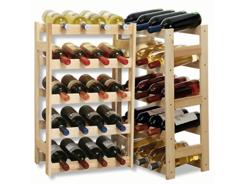 Regál je určený pre štandardné 0,75l fľaše na víno typu Bordeaux alebo Burgundy. Širšie fľaše od sektu alebo špecifické typy nemusia do výrezov pasovať.