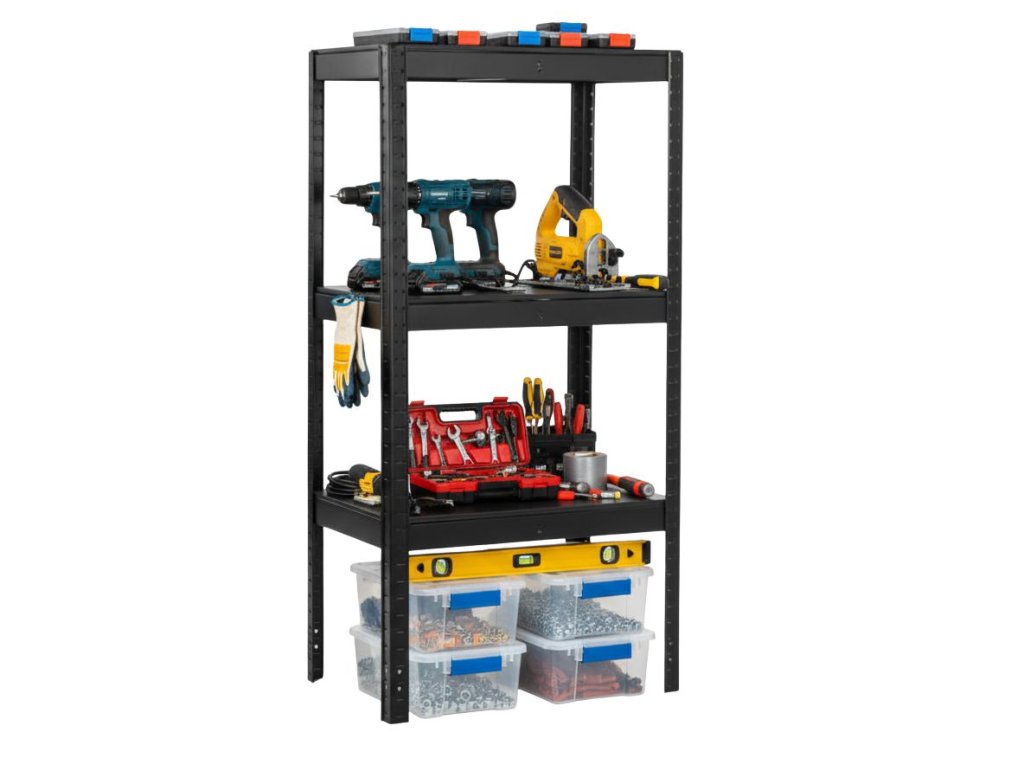 Ideálna výška, ktorá poskytuje tri ľahko dostupné police. Horná plocha skvele poslúži ako robustný pracovný alebo odkladací stôl vo vašej dielni či garáži.