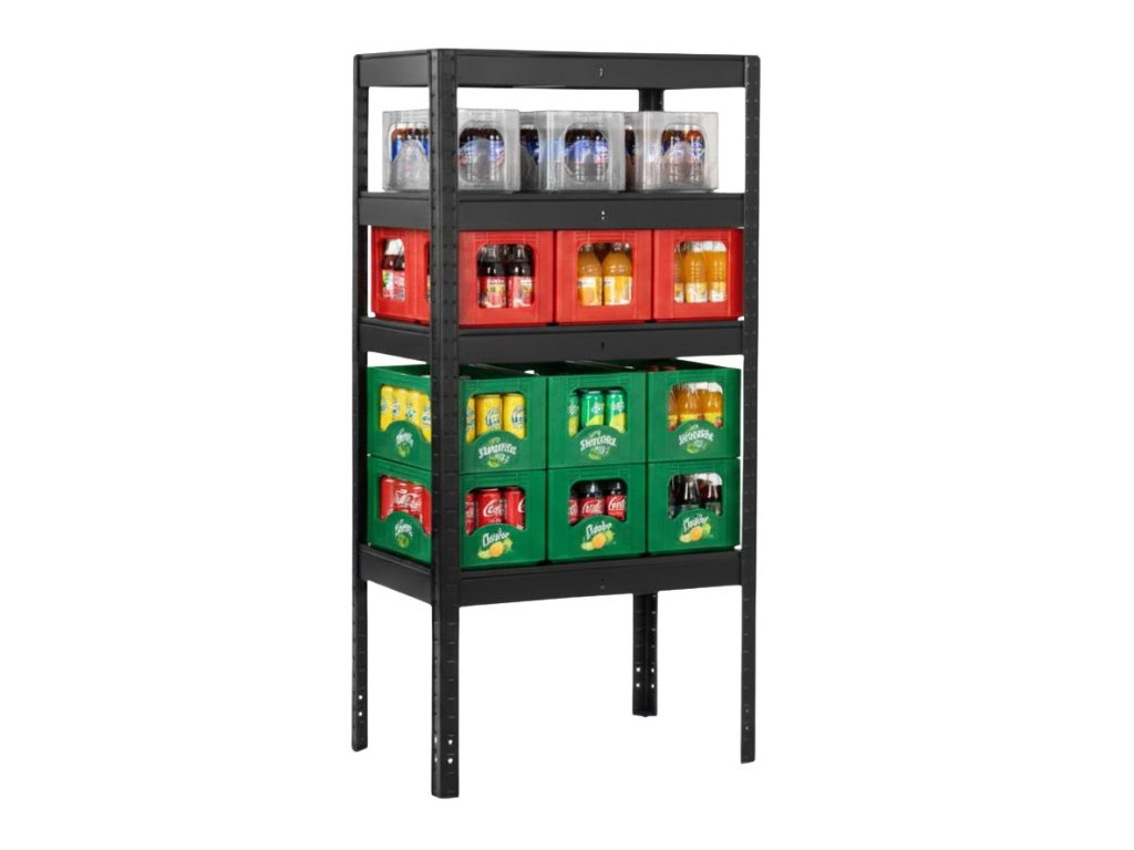 Lakovaný celokovový regál Mamutex Standard 1600x600x400 mm - 4 police, nosnosť 480 kg, čierny
