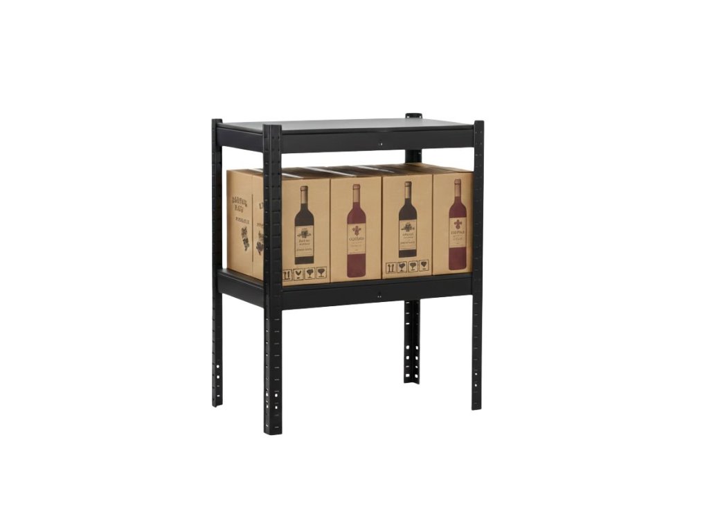 Široká základňa a kovová konštrukcia zaisťujú pevnosť a stabilitu. Regál je navrhnutý tak, aby spoľahlivo slúžil v domácnostiach aj menších prevádzkach.