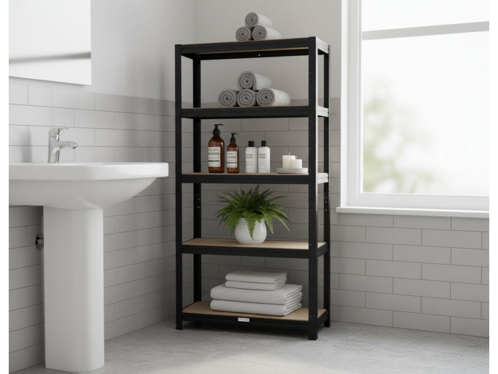 Ačkoliv je regál stabilní i samostatně, pro 100% jistotu a bezpečí – zejména v domácnostech s dětmi nebo při plném zatížení – doporučujeme jeho ukotvení ke zdi. Nejtěžší předměty vždy umisťujte do spodních polic.