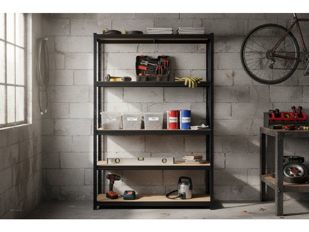 Lakovaný kovový regál Mamutex Standard 1800x1200x400 mm – 5 políc, nosnosť 875 kg, čierny