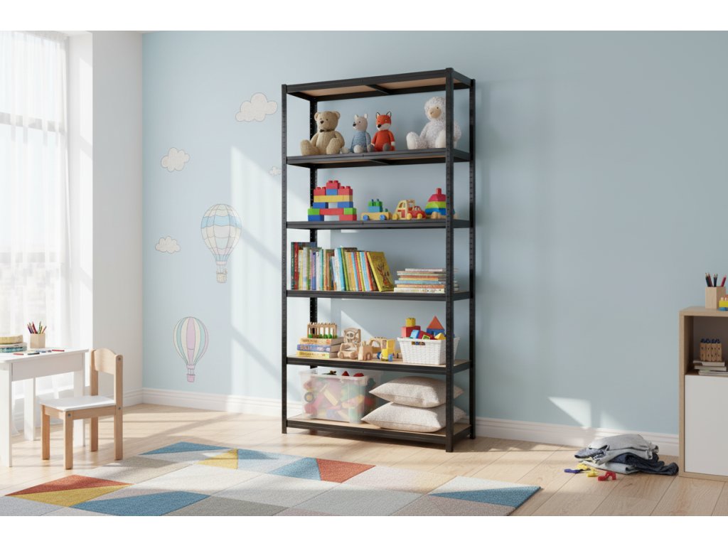 Lakovaný kovový regál Mamutex Standard 2000x1000x400 mm – 5 políc, nosnosť 875 kg, čierny