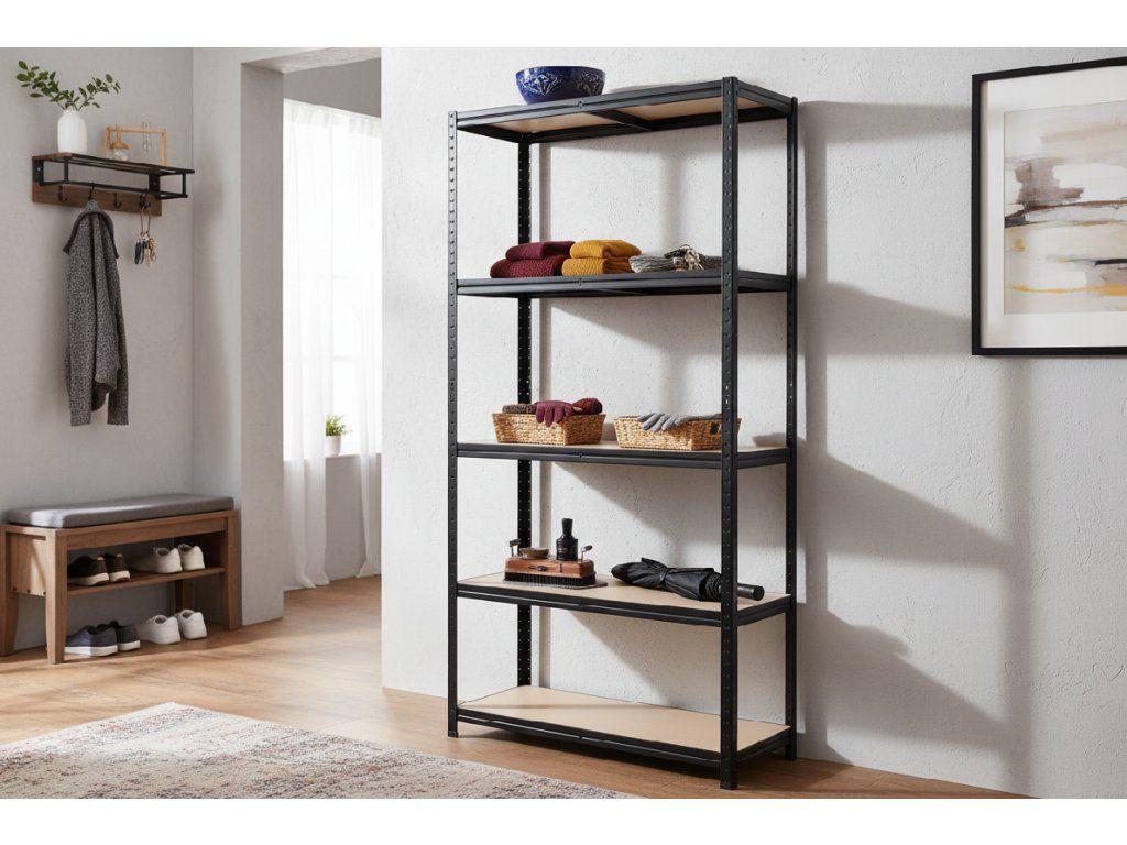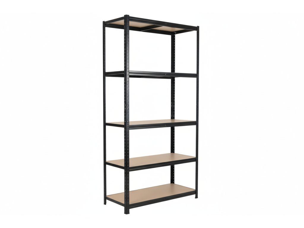 Lakovaný kovový regál Mamutex Standard 2000x1000x600 mm – 5 políc, nosnosť 875 kg, čierny