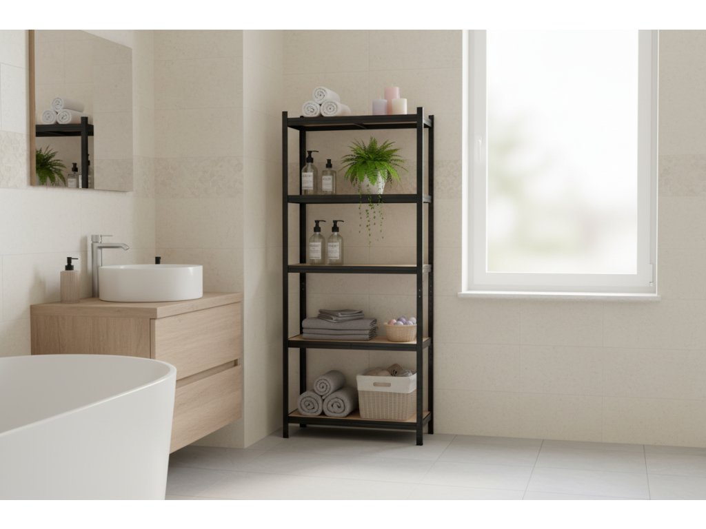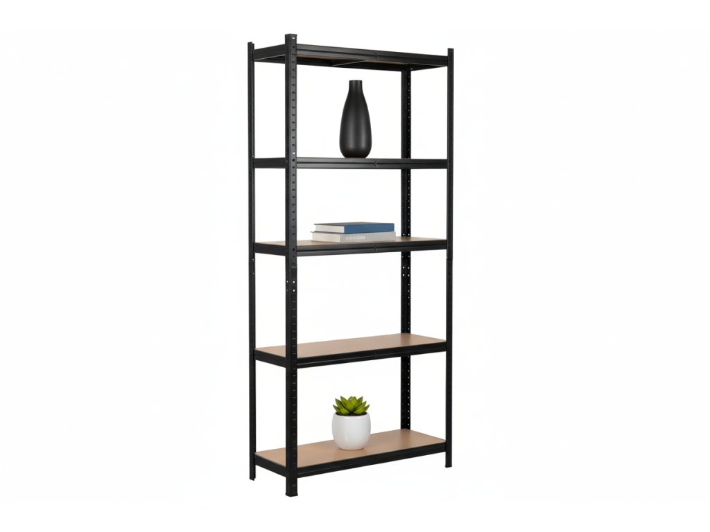 Lakovaný kovový regál Mamutex Standard 2000x900x500 mm – 5 políc, nosnosť 875 kg, čierny