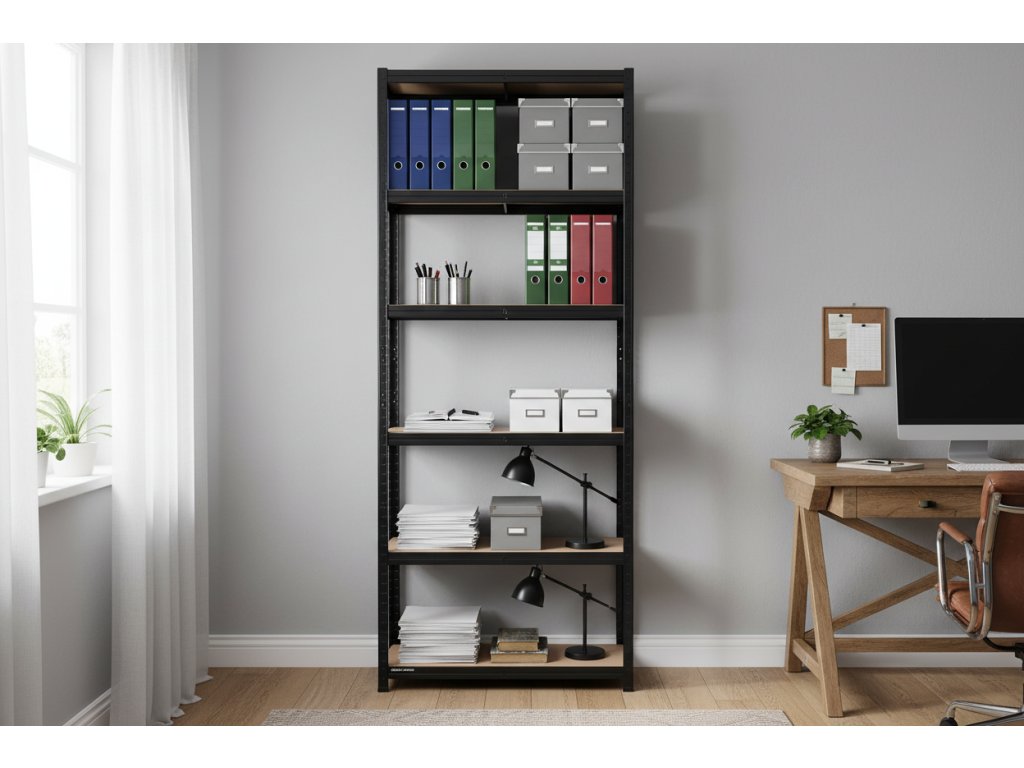 Prečo sa uspokojiť s piatimi policami, keď ich môžete mať šesť? Tento extra vysoký lakovaný regál s výškou 220 cm je navrhnutý pre tých, ktorí chcú maximálnu úložnú hustotu a dokonalú organizáciu v priestoroch s vyššími stropmi, ako sú moderné komory, pracovné miestnosti alebo archívy.