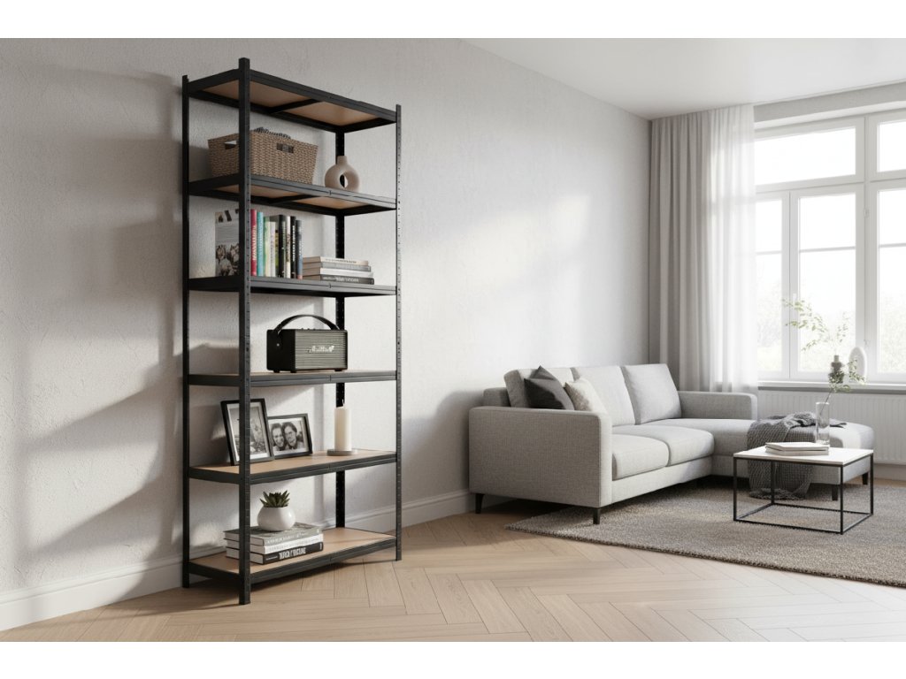 Tento regál je odpoveďou na otázku, ako uskladniť maximum vecí na minimálnej ploche a zároveň zachovať čistý vzhľad. Kombinácia extra výšky 220 cm, hĺbky 50 cm a šiestich políc z neho robí skutočného šampióna v úložnej kapacite pre vašu priestrannú komoru, ateliér alebo čistý sklad.