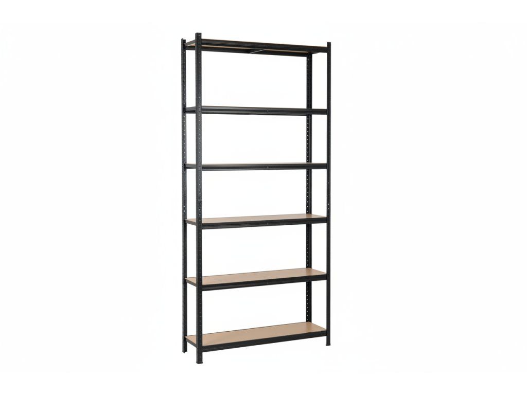 Lakovaný kovový regál Mamutex Standard 2400x1200x400 mm – 6 políc, nosnosť 1050 kg, čierny
