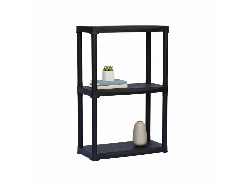 Hľadáte praktické a nenáročné riešenie na skladovanie potravín, čistiacich prostriedkov alebo drobných vecí? Tento plastový regál s rozmermi 90x60x30 cm sa zmestí aj do menších priestorov a vďaka trom policam s celkovou nosnosťou 60 kg vám pomôže udržať dokonalý prehľad.