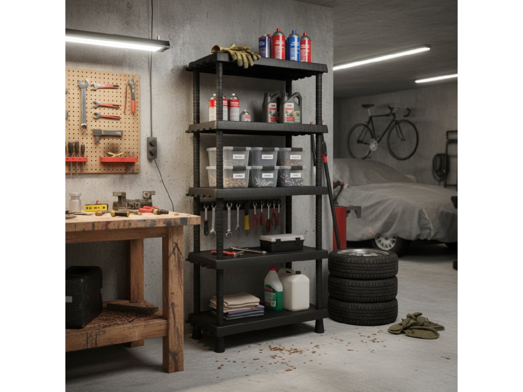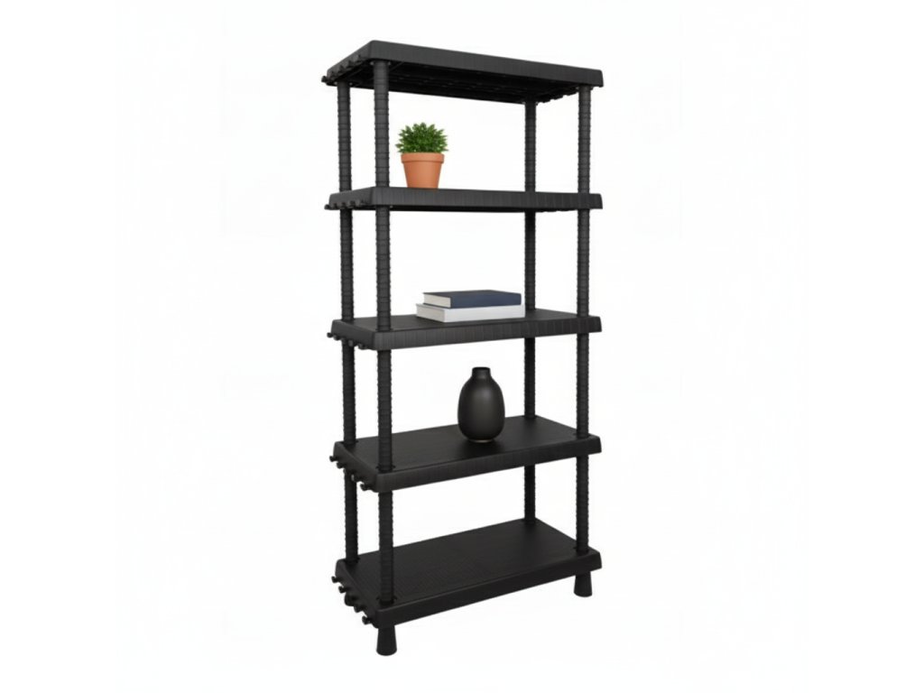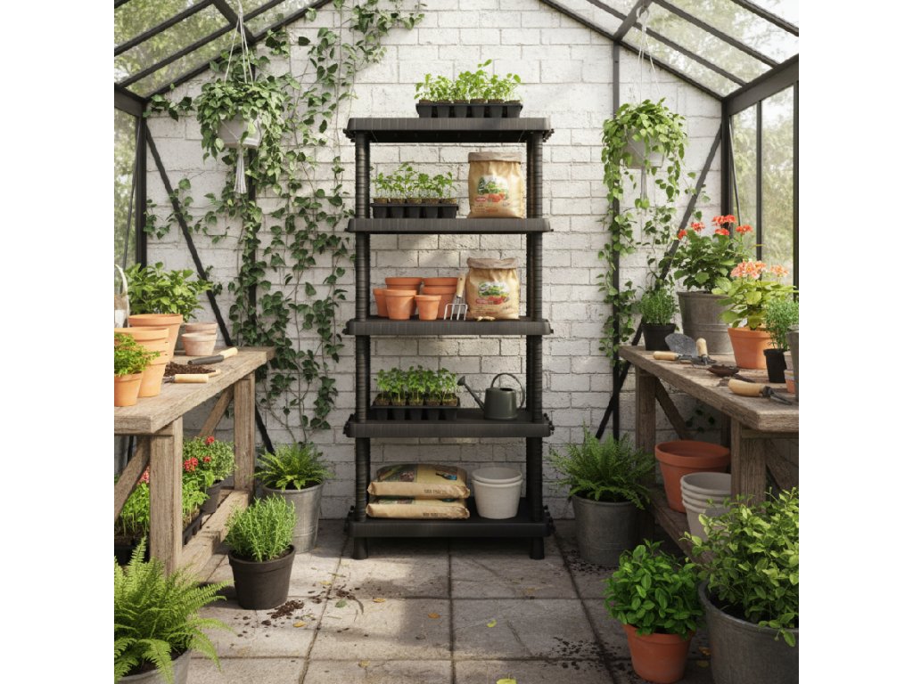 Potrebujete flexibilné a odolné riešenie? Tento plastový regál s rozmermi 164,5x72x35 cm ponúka 5 políc s celkovou nosnosťou 175 kg, až 40 možností výškového nastavenia a navyše 5 praktických háčikov na každej polici. Je extra vystužený a robustný, ideálny pre vlhké priestory aj vonkajšie použitie. Ľahko sa čistí, nezadržuje pachy a jeho montáž zvládnete bez náradia.