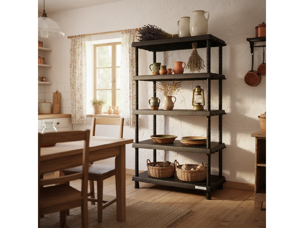 Nastaviteľné police, háčiky a robustná konštrukcia robia z tohto regálu ideálnu voľbu pre väčšie domácnosti. Využijete ho v špajze, pivnici aj na balkóne. Vďaka odolnosti voči vlhkosti a jednoduchej údržbe je spoľahlivý v každodennej prevádzke.
