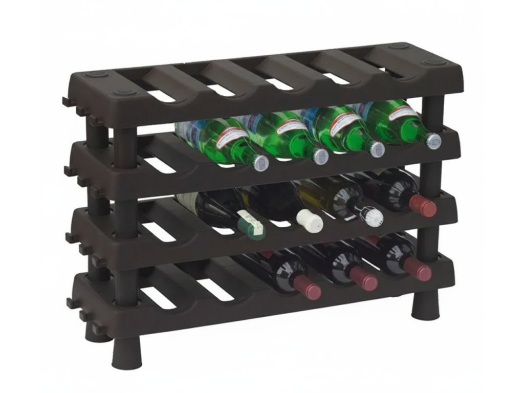 Chcete mať svoju zbierku vín vždy prehľadne usporiadanú? Tento plastový regál s rozmermi 49,5x71,5x22 cm pojme až 20 fliaš a vďaka čiernej farbe pôsobí elegantne v každom interiéri. Každá polica pojme 5 fliaš, ktoré tak zostanú bezpečne uložené. Regál môžete navyše pripevniť aj na stenu pre ešte väčšiu stabilitu.