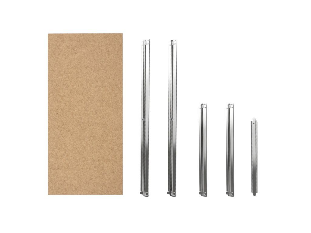 Balenie obsahuje: MDF dosku + kovové nosníky na uchytenie