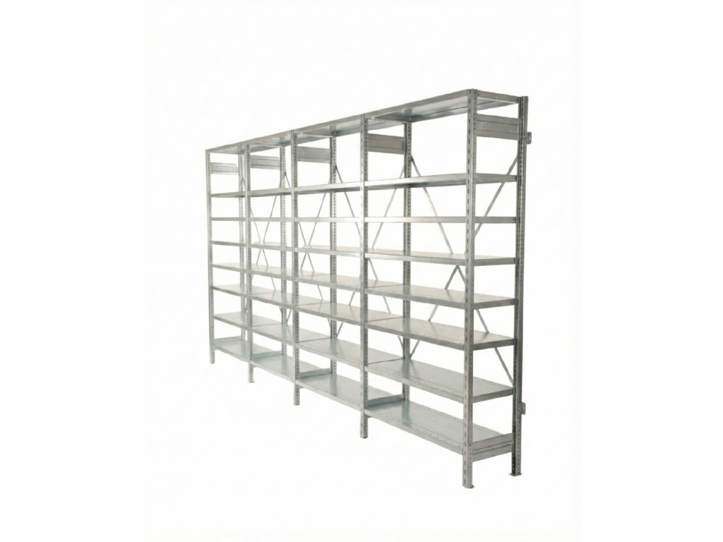 Zinkovaný celokovový regál STOW 3000x1000x300 mm - 8 políc, nosnosť 1280 kg - ZÁKLADNÝ MODUL