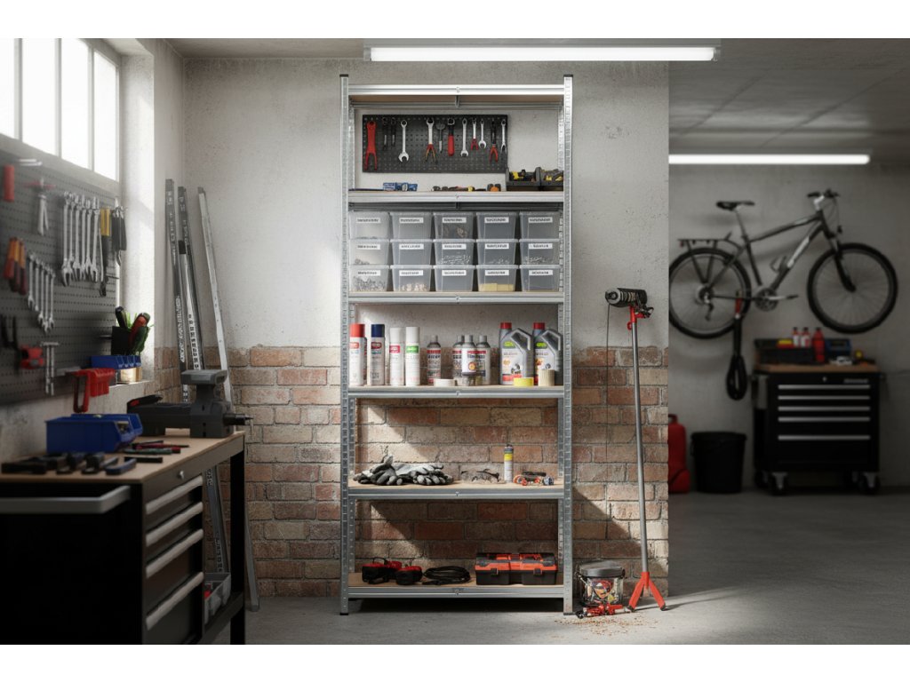 Moja garáž má vysoký strop a chcel som ho konečne využiť. Tento 240cm regál je presne ono. Postavil som tri vedľa seba a mám teraz celú stenu ako jeden veľký a prehľadný sklad.